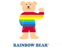 虹色の服を着たクマがキャラクターの、タオル&小物シリーズ